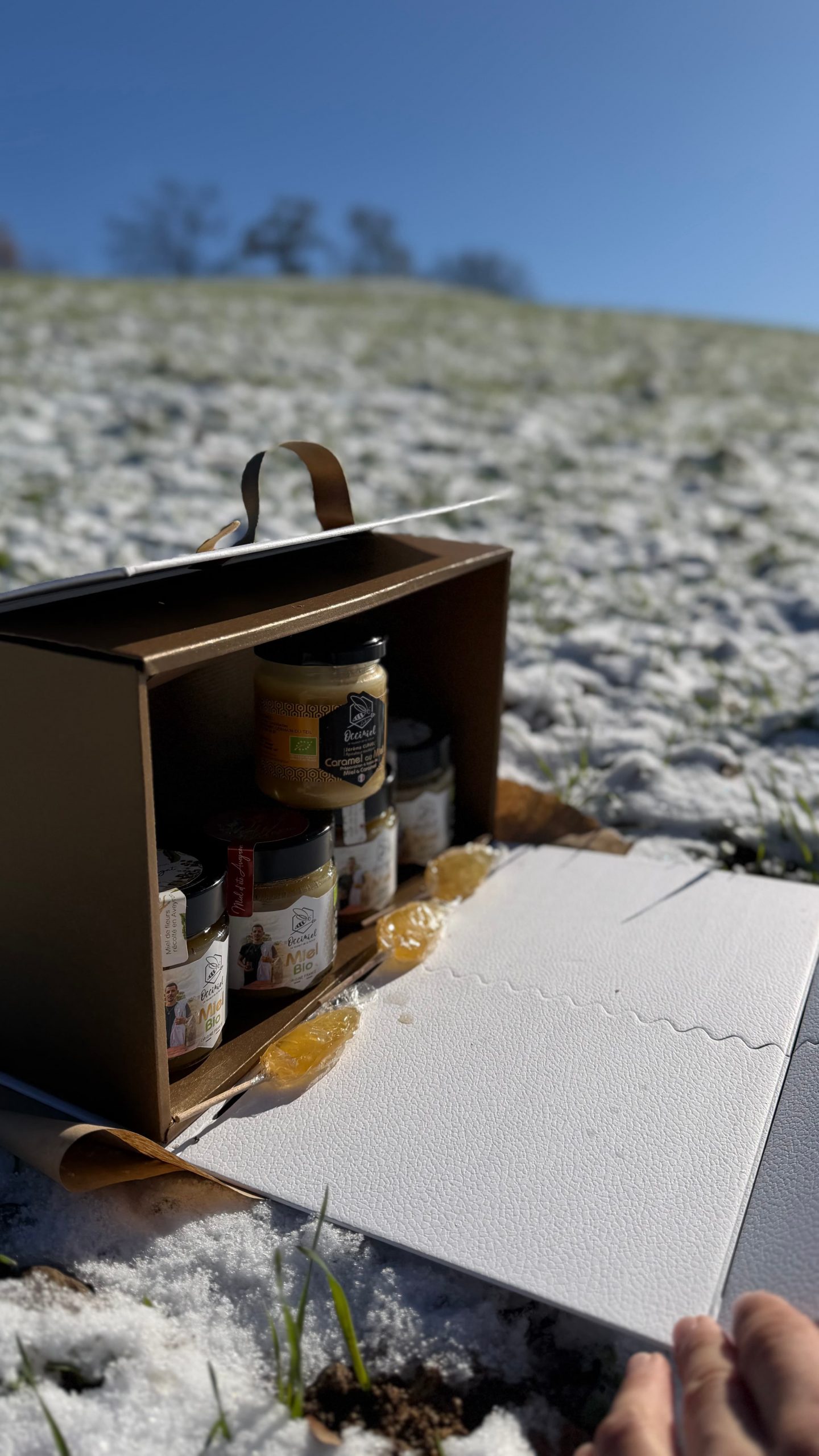 Une fois n’est pas coutume je voulais vous proposez une autre version de ce coffret un peu plus accessible. On retrouve des douceurs à base de miel. Histoire de changer l’expérience gustative.